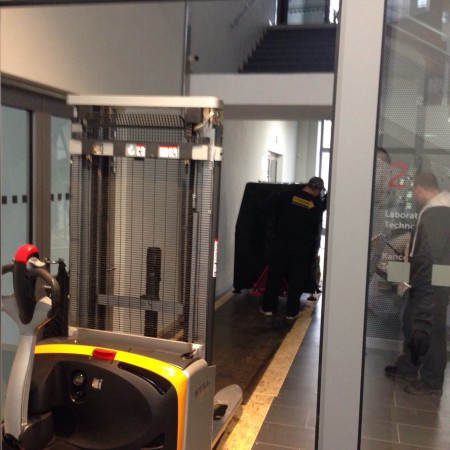 Stěhování jsme vyřešily pomocí vysokozdvižného vozíku kterým jsme stroj dostaly na první podestu od kud jsme ho odnesli pomocí stěhovacích kurt.Dvě firmy před námi si stouto zakázkou nedokázali poradit.Naše zkušenosti v oboru stěhování těžkých břemen jsou více jak 15 leté proto i takto náročnou...