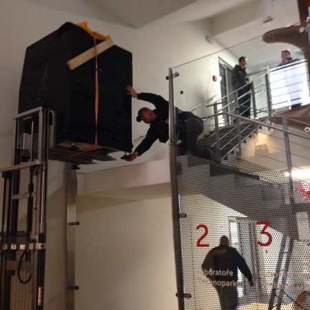 Stěhování jsme vyřešily pomocí vysokozdvižného vozíku kterým jsme stroj dostaly na první podestu od kud jsme ho odnesli pomocí stěhovacích kurt.Dvě firmy před námi si stouto zakázkou nedokázali poradit.Naše zkušenosti v oboru stěhování těžkých břemen jsou více jak 15 leté proto i takto náročnou...