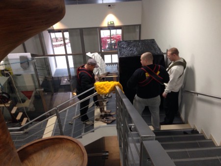 Stěhování stroje 650kg který neprošel po schodišti.