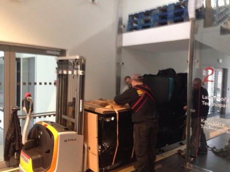 Stěhování jsme vyřešily pomocí vysokozdvižného vozíku kterým jsme stroj dostaly na první podestu od kud jsme ho odnesli pomocí stěhovacích kurt.Dvě firmy před námi si stouto zakázkou nedokázali poradit.Naše zkušenosti v oboru stěhování těžkých břemen jsou více jak 15 leté proto i takto náročnou...