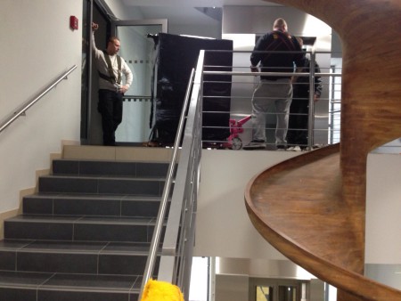 Stěhování stroje 650kg který neprošel po schodišti.